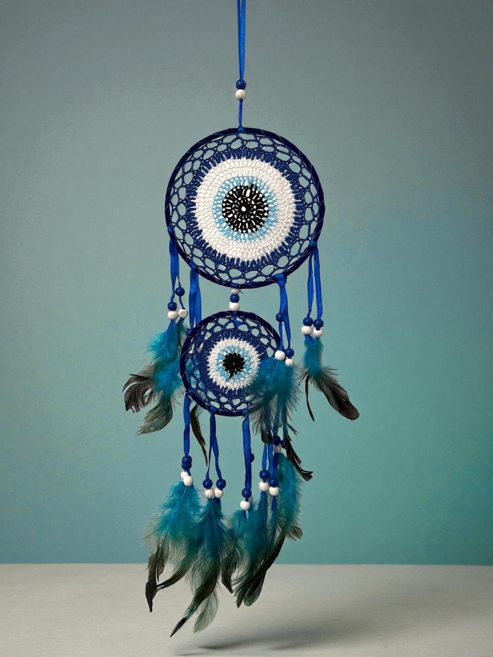 Atrapasueños ojo turco tejido con plumas doble 60 cm cantidad