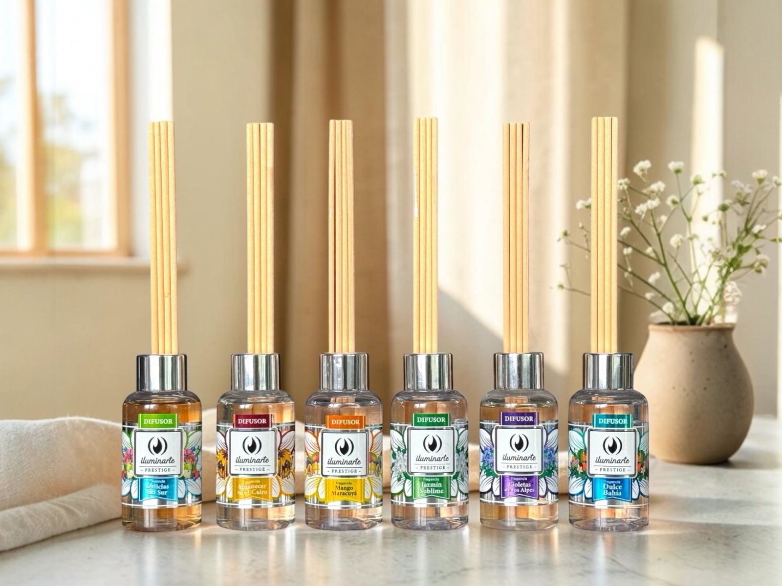 | Difusor 60 ml | Agua Marina, Amanecer en el Cairo, Angel Baby, Canela, Caricias de algodon, Cereza Patchouli, Choco Dubai, Citric Lemon, Citronella Organica, Coconut, Cony, Delicias del Sur, Dulce Vainillas, Fresias del eden, Frutilla Dulce, Frutillas a la crema, Granada Mediterranea, Hawaiian, Lavandas del Valle, Limon y Naranja, Mango Maracuya, Mil Flores, Naranja de Kerala, Oro rubi, Papaya Tropical, Peras y duraznos, Pimpollos de Jazmin, Rosa Bulgara, Suavi Rap, Tutti fruti, Uva Dulce |