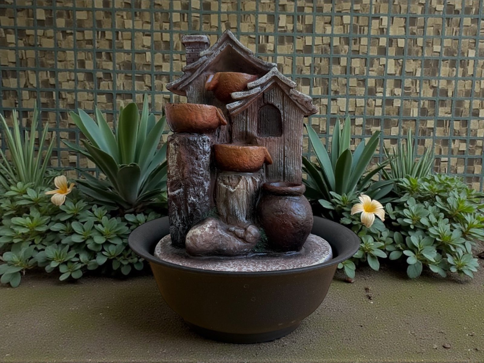 Fuente de agua casa vasija con led 27 cm cantidad