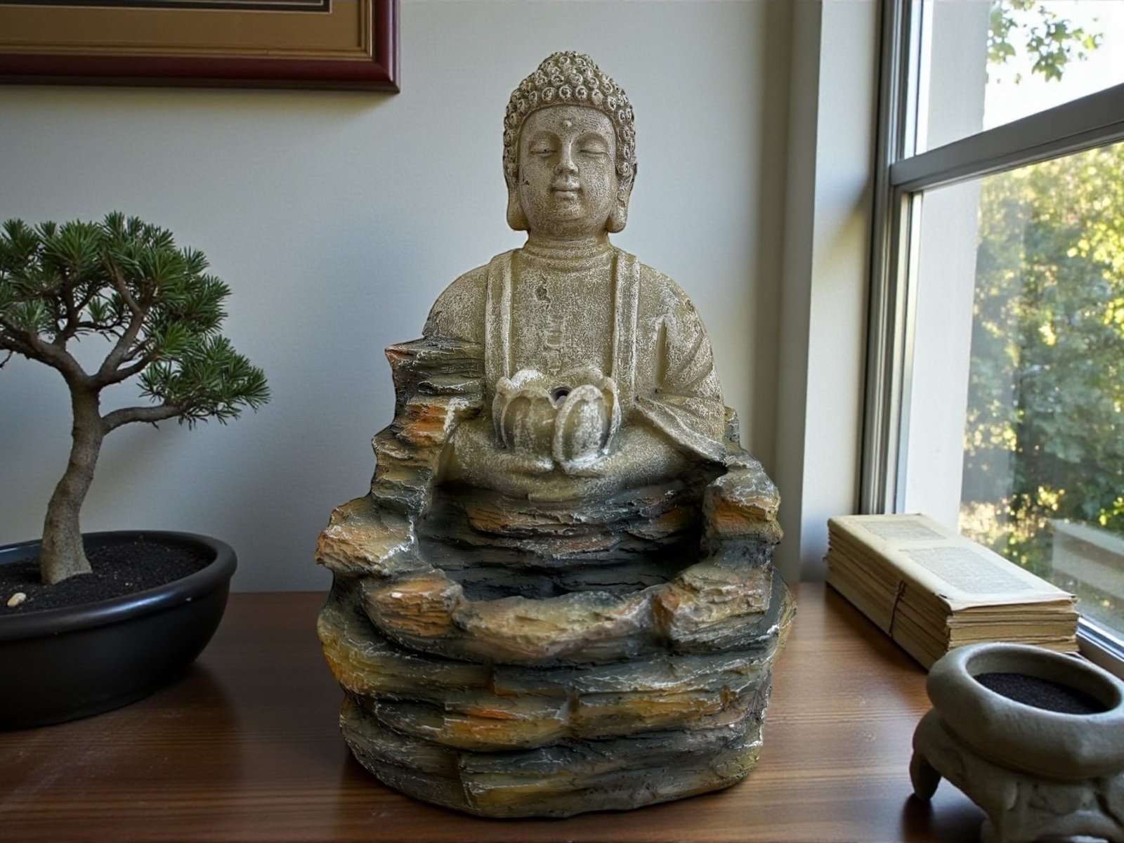 Fuente de agua Buda sobre piedras 25 cm cantidad