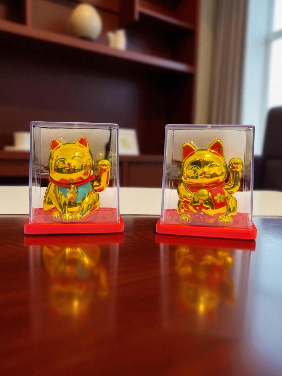 Gato de la fortuna mini caja cristal dorado 6,5 cm cantidad