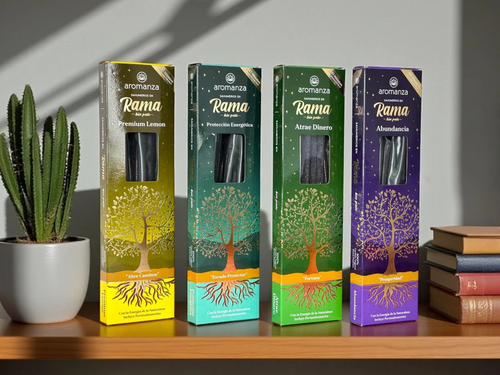 | sahumerio en rama | Abundancia, Atrae dinero, Berry Kiss, Diamante Negro, Energia Limpia, Esencia de la india, Fragancia Oriental, Frutos rojos, Gardenias y Flores blancas, Granada Mediterranea, Naranja pimienta, Naranja y Pimienta, Ocean Blue, Palo santo, Premiun Lemon, Proteccion Energetica, Ratnamala, Real champa, Sandalo consagrado, Vainillas Encantadas |